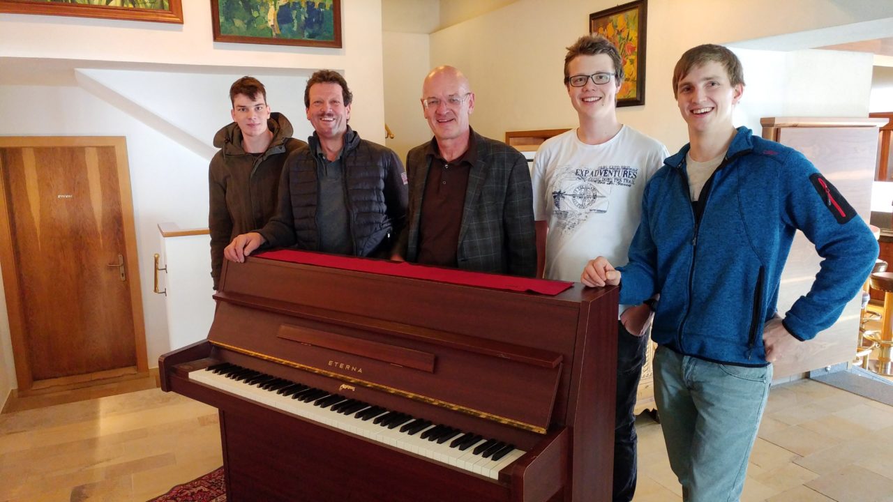 Schon seit einigen Jahren steht im Keller vom Lifehotel Geiger ein nicht mehr benutztes Piano. So entschied sich der Herr des Hauses, Florian Geiger, das Klavier der Musikkapelle zu überlassen. Nach dem beschwerlichen Transport (das Piano hat immerhin fast 400kg) findet das Klavier nun einen Platz in unserem Aufenthaltsraum.