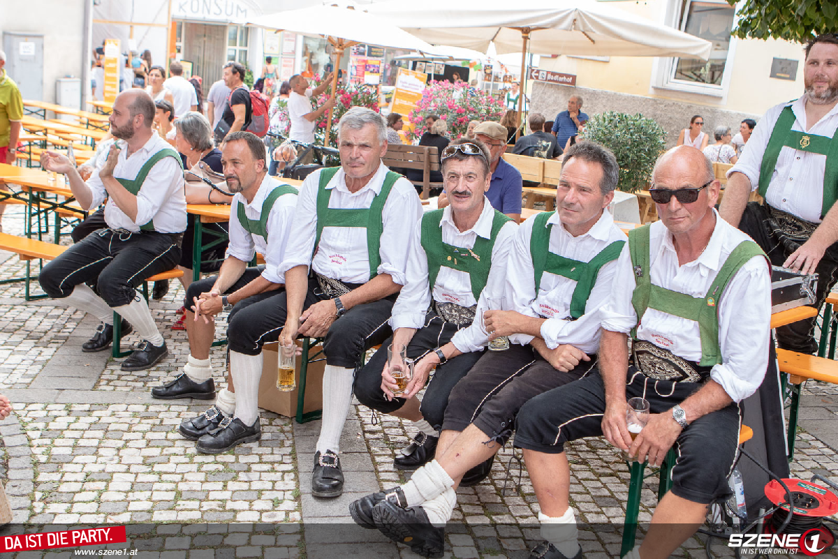 Jenseits der 30-Grad Marke des Thermometers, aber gut beschattet und verpflegt, durften wir von 11.00 bis 13.30 Uhr am Hauptplatz in Laas die zahlreichen Zuhörer mit unserem Konzertprogramm unterhalten.
